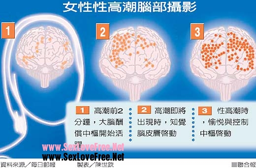 〔編譯魏國金/綜合報導〕美國新澤西州羅格斯大學的研究團隊利用核磁共振攝影(MRI),首度揭露女性高潮時腦部的運作反應,他們發現,性衝動麻痺了女性的神經系統,到某一程度女性只有感到快樂而不覺疼痛,而性高潮影響了大腦負責情緒、觸感、快樂、滿足與記憶反應等多達30個不同區域。