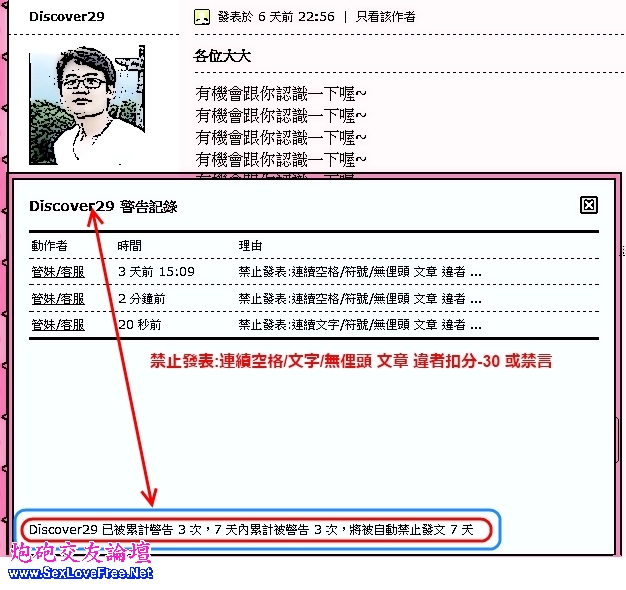 Discover29 被檢舉 違規連續空格 文字貼上 灌水文