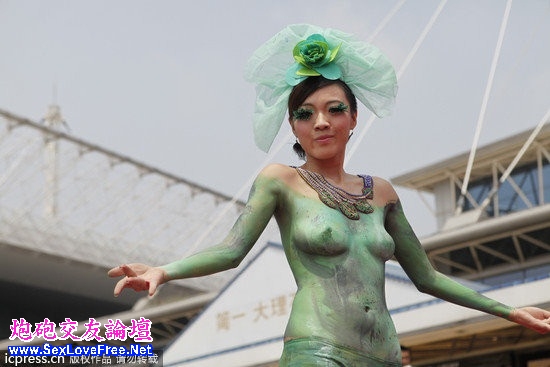 ▼2012年6月8日,2012年長春房地產暨相關產業產品展示交易會現場。圖為房交會場外某家裝品牌舉行大型人體彩繪活動。(圖/房地產報-東方IC)