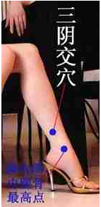 其實,三陰交穴就是我們的父母留給我們的巨額財產。可以幫助我們維持年輕,延緩衰老,推遲更年期,保證女人的魅力。三陰交穴在小腿內側,腳踝骨的最高點往上三寸處(自己的手橫著放,約四根手指橫著的寬度)。三陰交對女人、對人體究竟有什麼神奇作用呢?