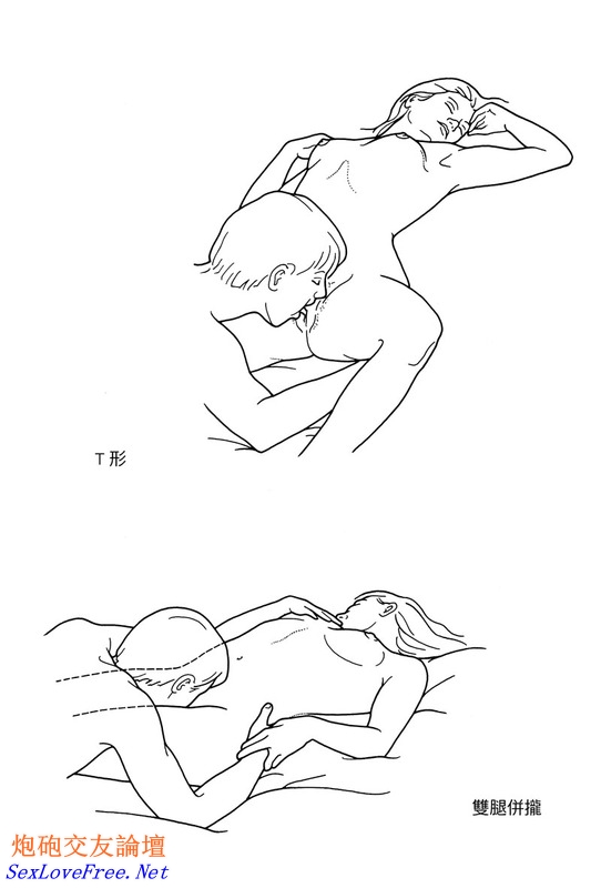 在以下的七張圖示中,你可以看到男人位於女人雙腿之間的標準體位,他的嘴巴接觸她的陰部。雖然這七種體位都屬於同一「家族」,